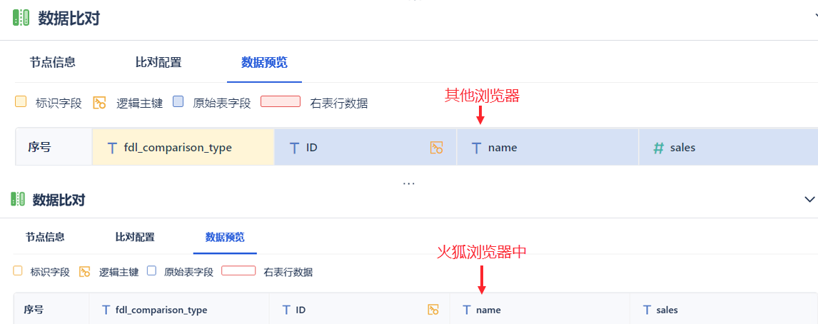 火狐浏览器中,不显示数据比对的预览样式。如下图所示: