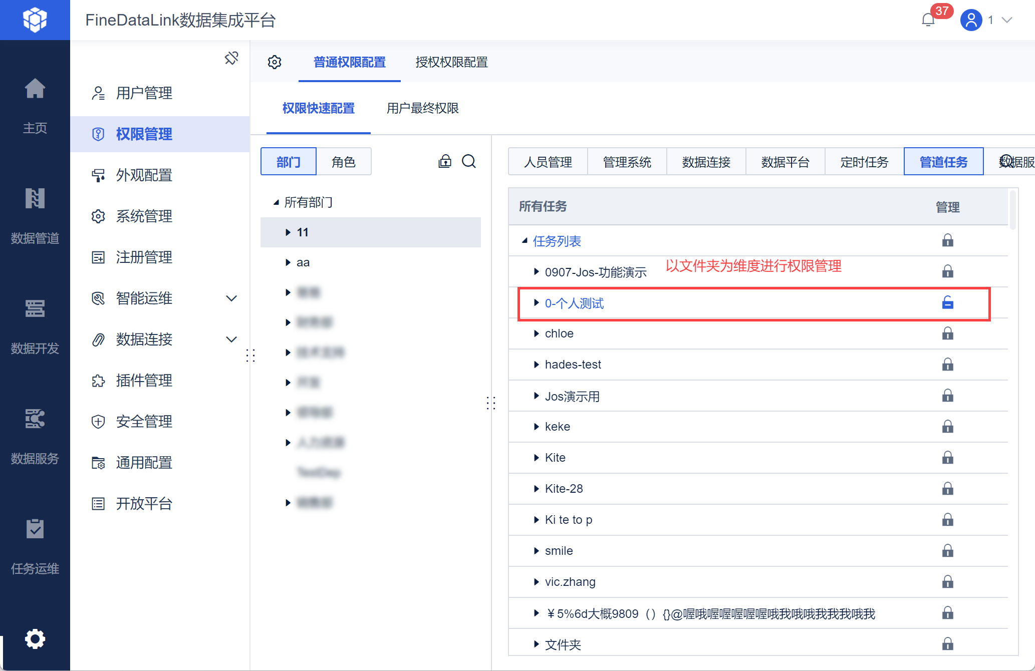管理员希望能为普通用户分配「数据管道」中指定管道任务的查看和编辑权限。