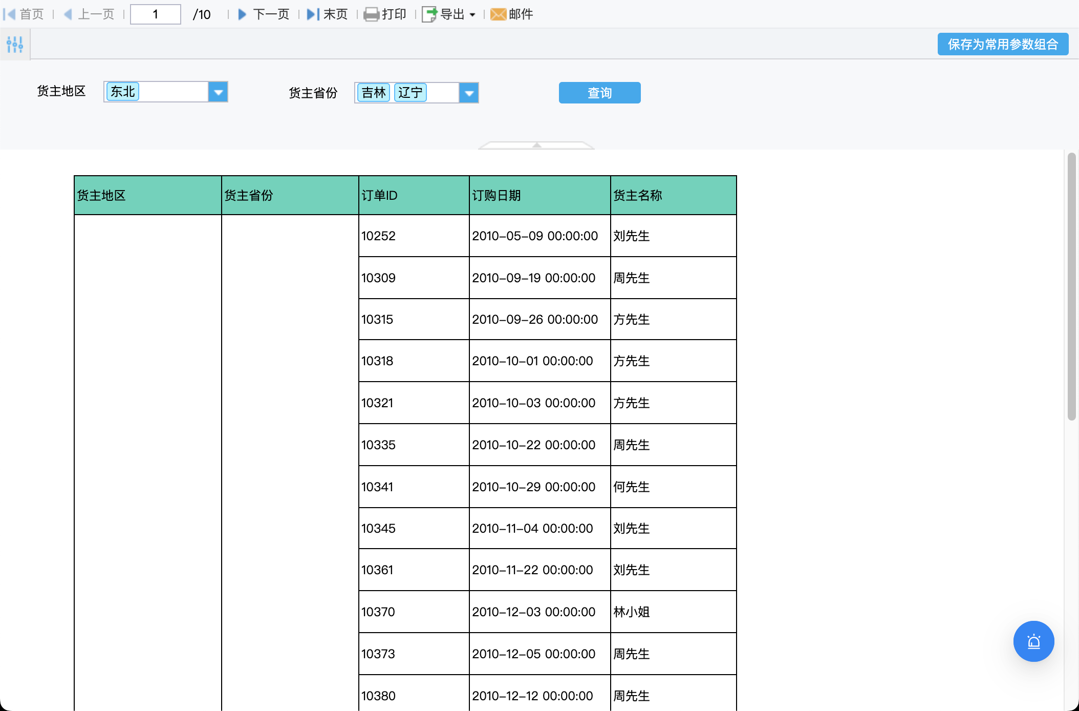 制作参数面板的「货主地区」和「货主省份」联动,参考:公式实现下拉复选框参数联动