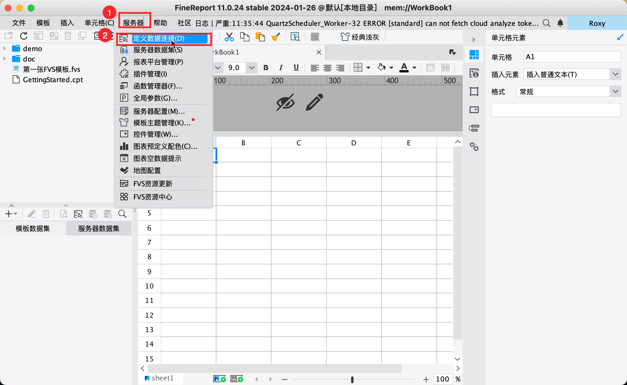 在设计器中创建一个空白cpt,命名为「FR销售订单看板-json数据集」