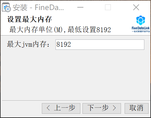 注:最大 JVM 内存默认为系统可用内存的50%,如果计算出来低于 8192 时默认为 8192M。需要注意的是最大 JVM 内存不能超过本机最大内存。