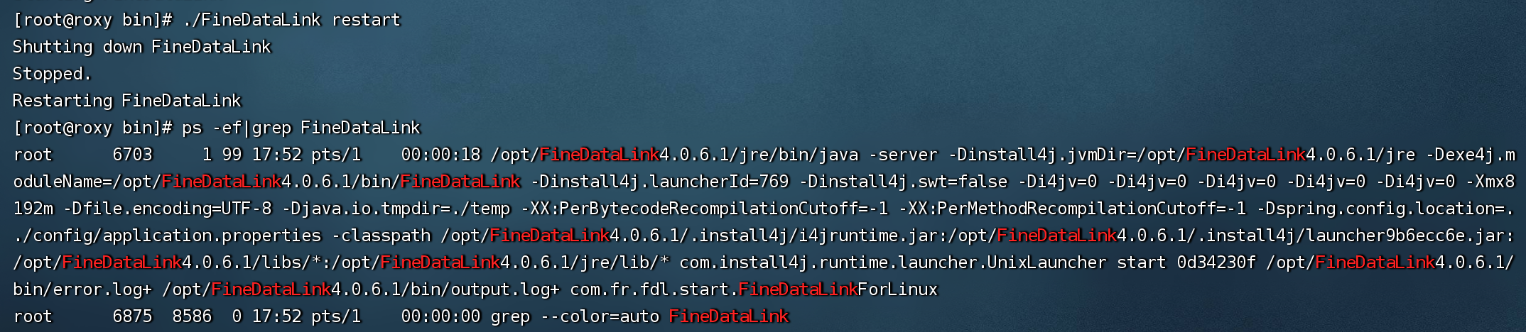进入FineDataLink安装目录的可执行文件目录下(默认为/opt/FineDataLink/bin)