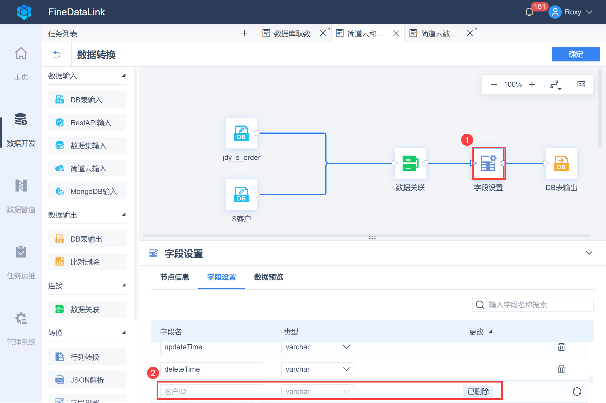 将关联后的重复字段「客户ID」删除,如下图所示: