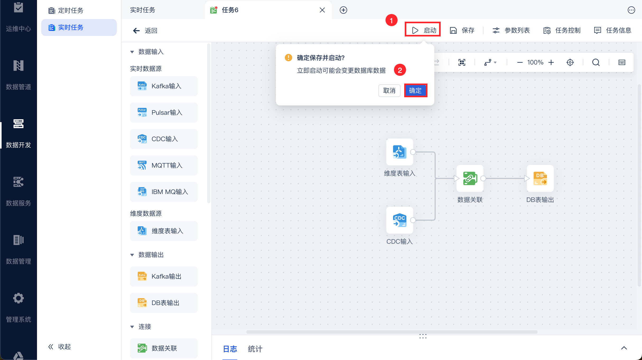 点击启动,即可启动实时任务,如下图所示: