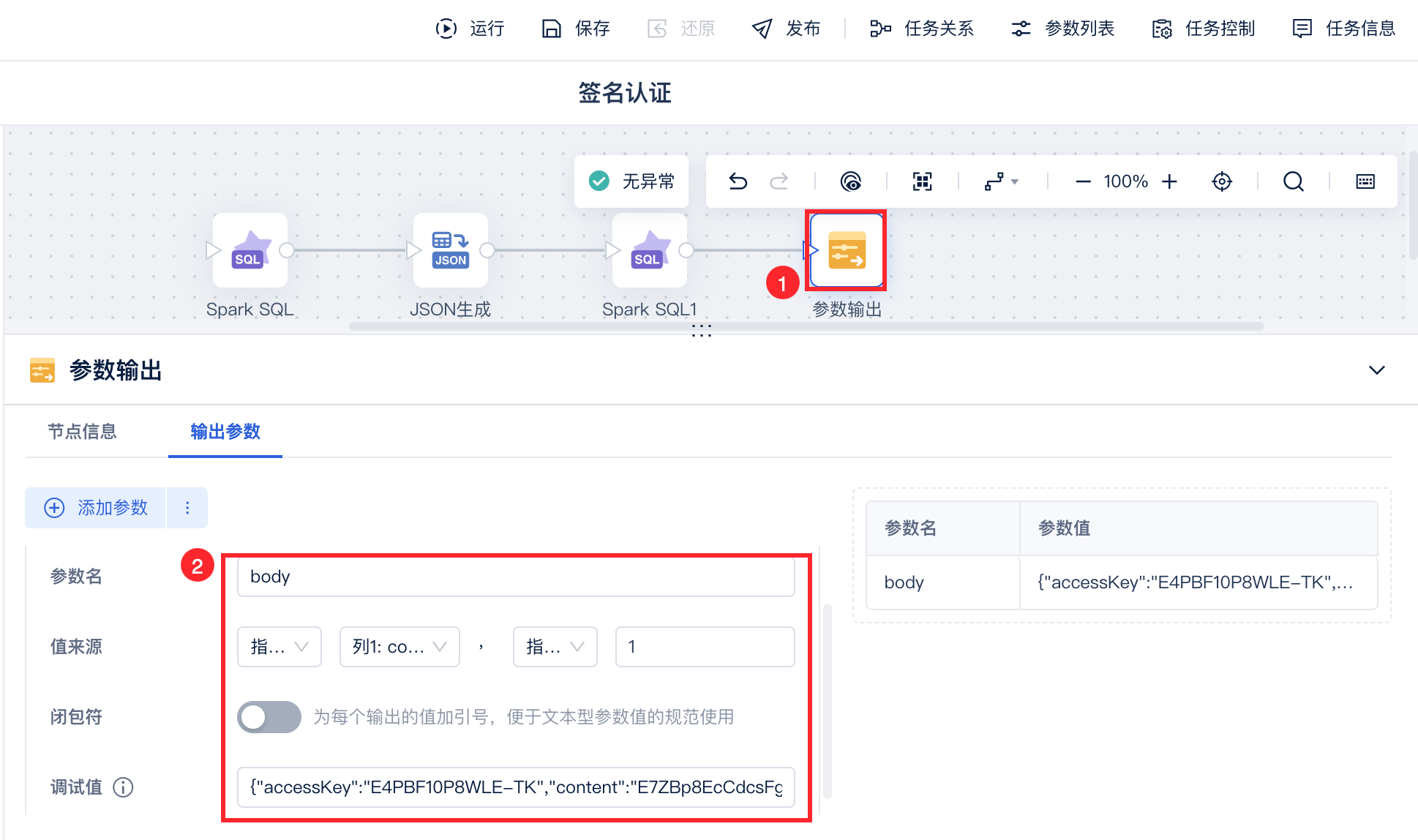 加密获取 content 字段:使用 SparkSQL 进行加密,并构建请求的 body 参数,如下图所示: