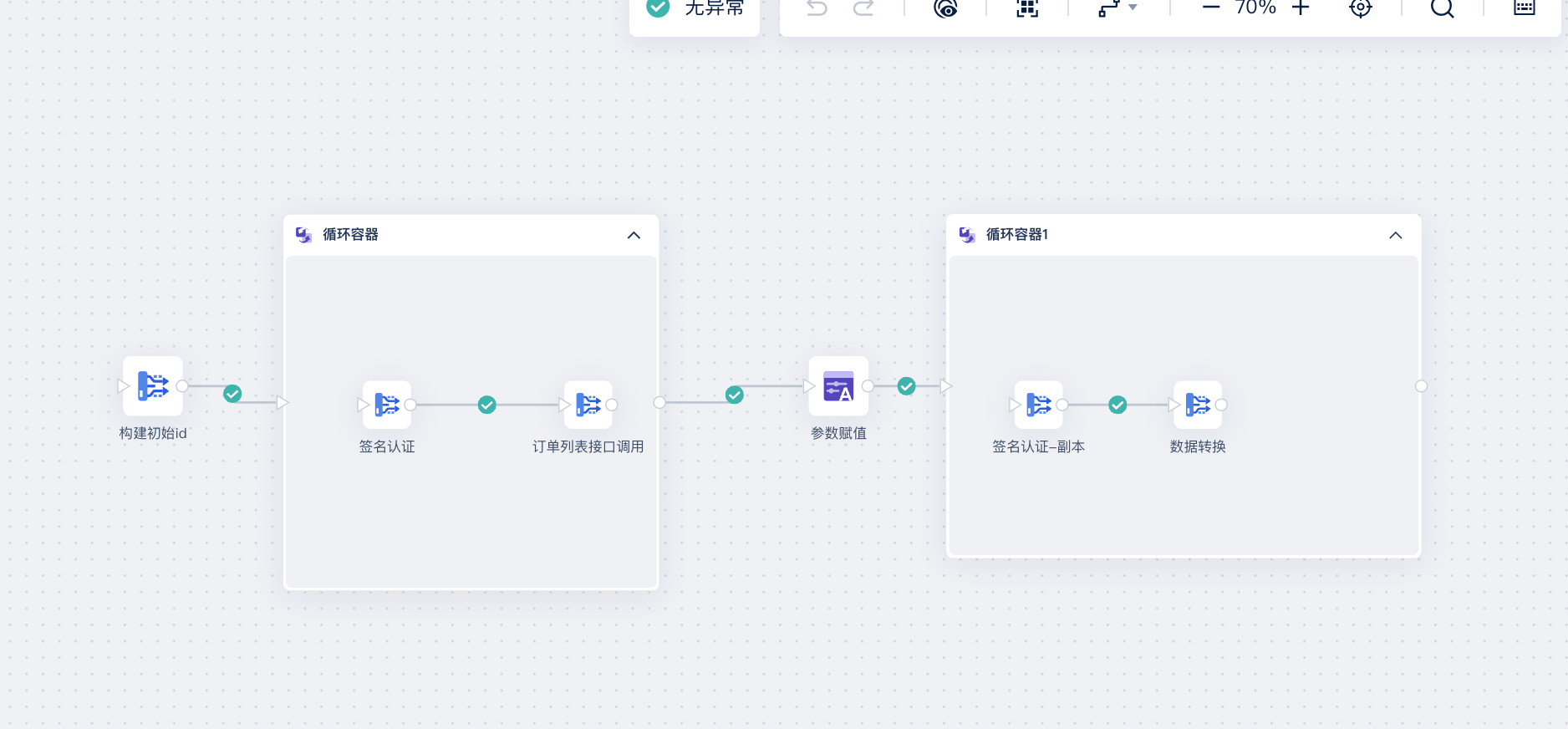 使用循环容器和 sqtBizOrderId 列表,再次拼接获取签名参数,调用订单列表接口获取全量的订单数据。