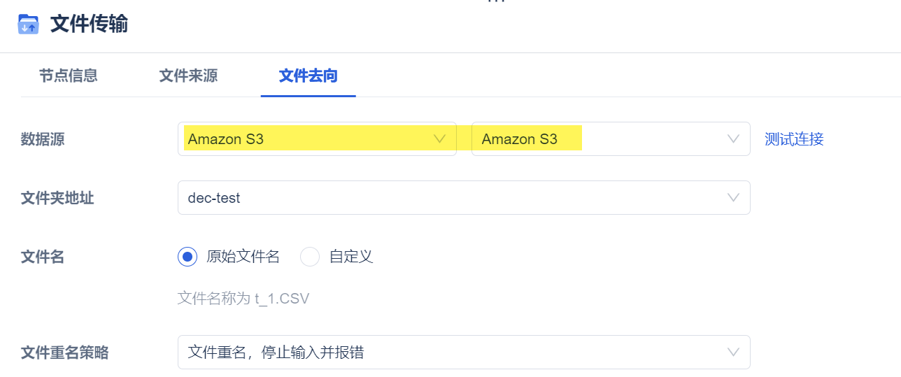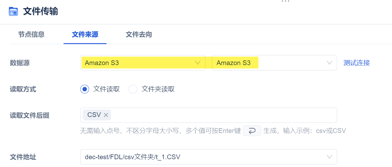 2)「文件传输」的文件来源新增:Amazon S3。如下图所示: