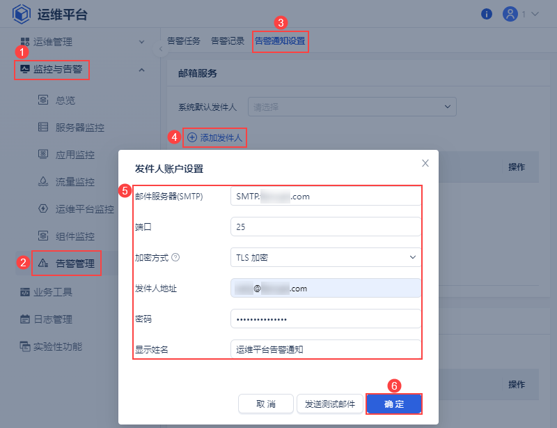 2)点击「添加发件人」,配置发件人账户,点击「确定」。