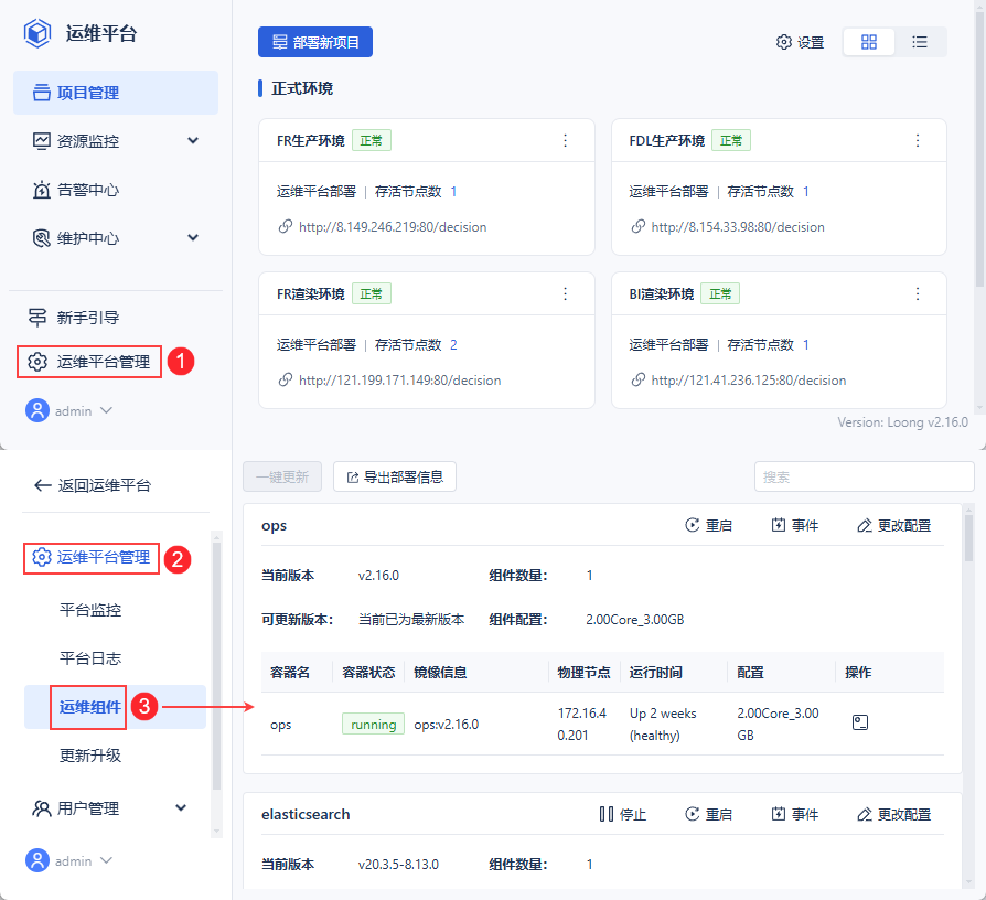 • 管理员登录运维平台,点击「运维平台管理>运维组件」。