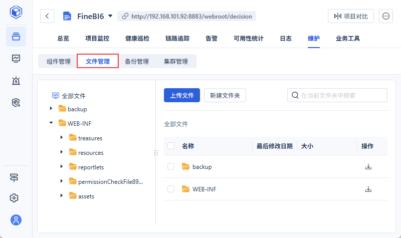 运维平台提供「文件管理」功能,让用户可通过前端界面化对运维项目中的工程文件进行查找、下载、上传等操作。