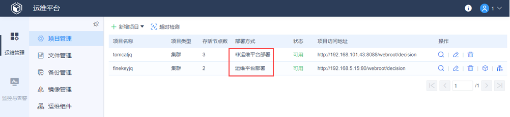 项目管理列表种,部署方式措辞优化,展示为:非运维平台部署/运维平台部署