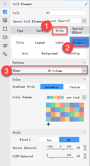 Set the shape to 3D Column and the Series Interval to -100, as shown below: