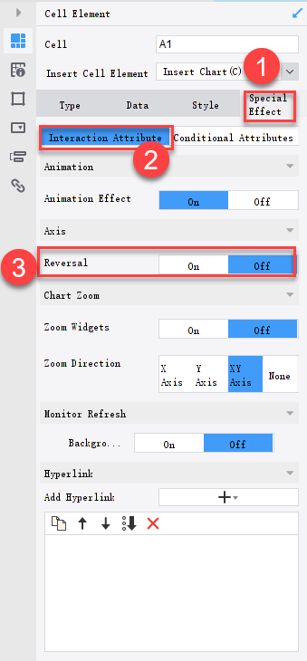 After Reversal is enabled under the Interaction Attribute, the column chart effect can be changed.