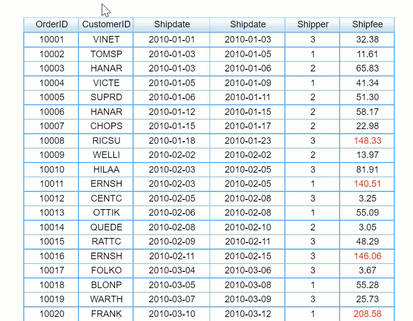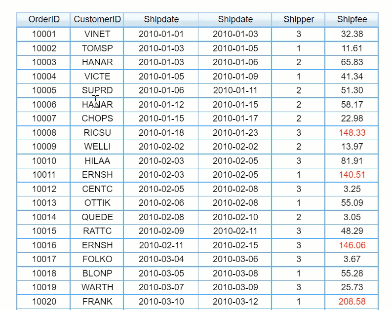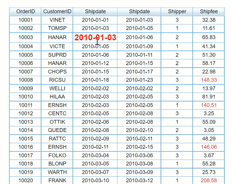 Example 3: In a general report, when the mouse hovers over a cell, the font is displayed in red and bold 14, and it is restored when left.