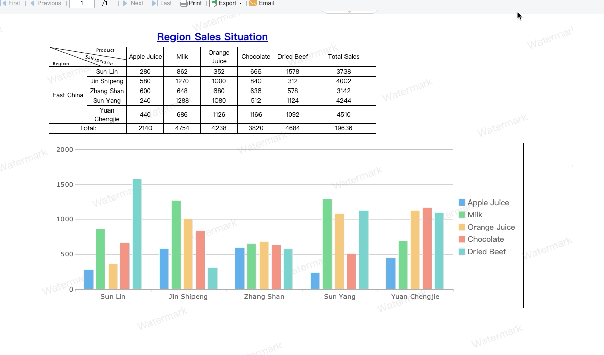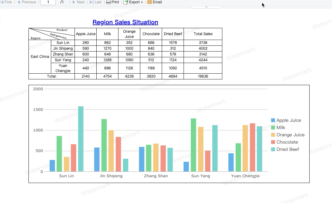 3) Save the template and then click [Pagination Preview] and the Query button. The effect is as described. The parameter pane is automatically folded when we view the content and is expanded when the mouse is moved onto it.
