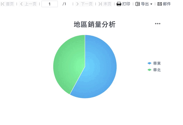 A 報表:「地區銷量分析」報表,用一張「餅圖」展示華東和華北兩個地區的銷量對比。