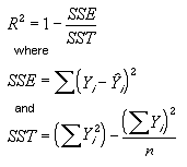 R 平方的值的計算公式如下,其中 SSE 和 SST 是利用最小二乘法原理計算: