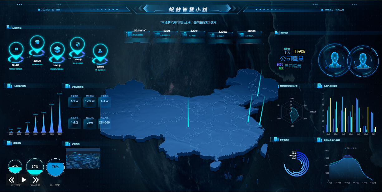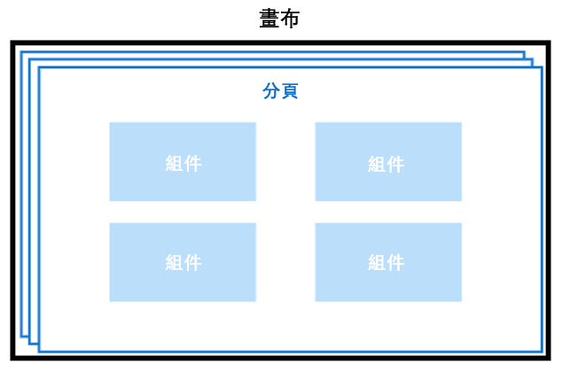 一張 FVS 企業戰情室範本,就是一張畫布。一張畫布中有多個分頁。每個分頁中有多個組件。