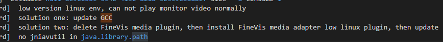 注:低版本 Linux 系統的判斷:使用「FineVis流媒體處理依賴」 V2.9 版本插件,根據日誌中的提示判斷是否需要升級。日誌若出現下圖報錯,則為低版本 Linux 。
