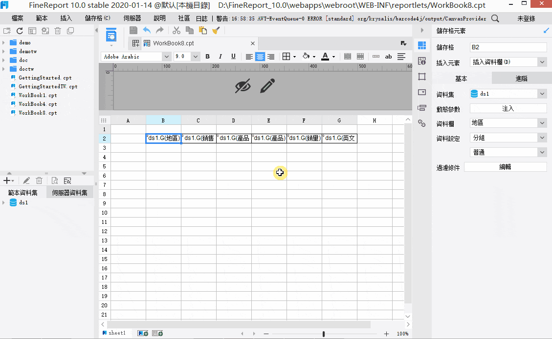 如【B2】儲存格裡的ds1.G,【G】這個英文字,表示資料欄設定為【分組】。