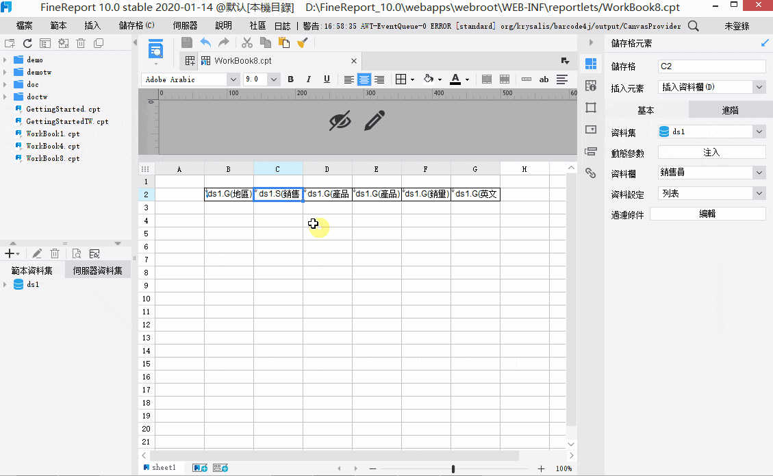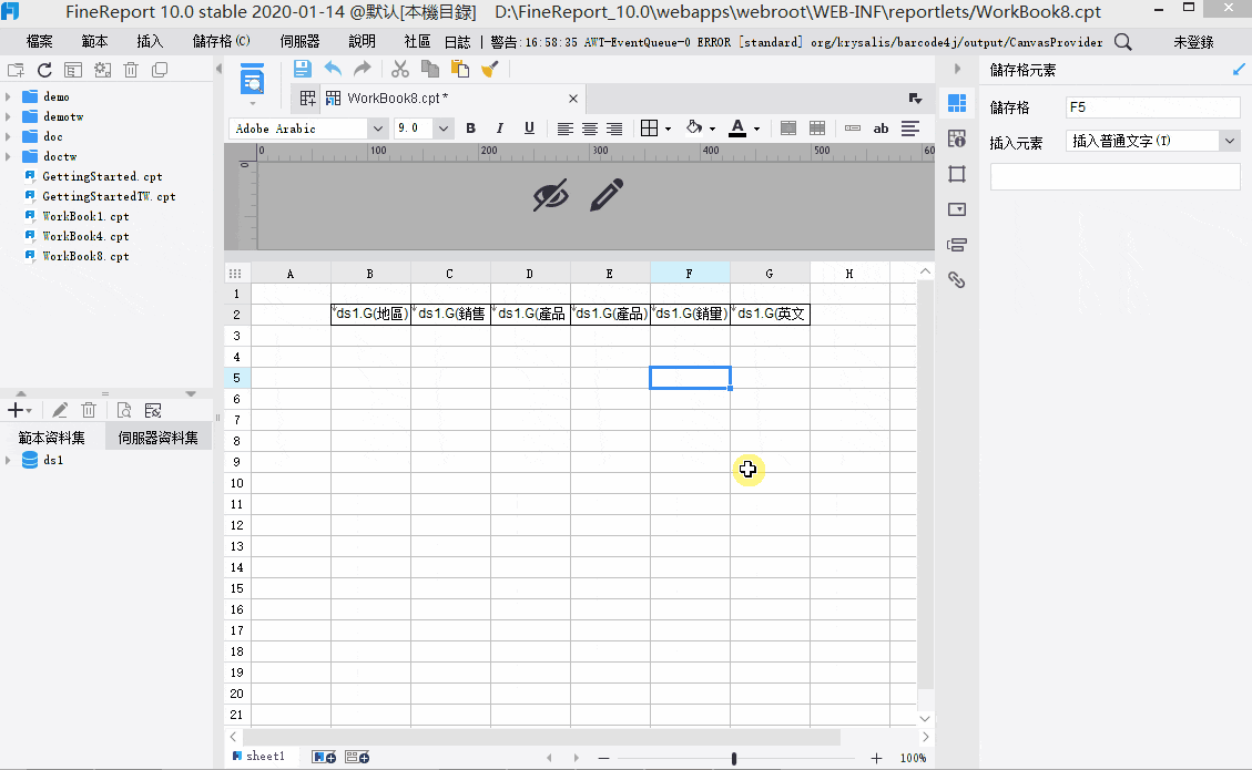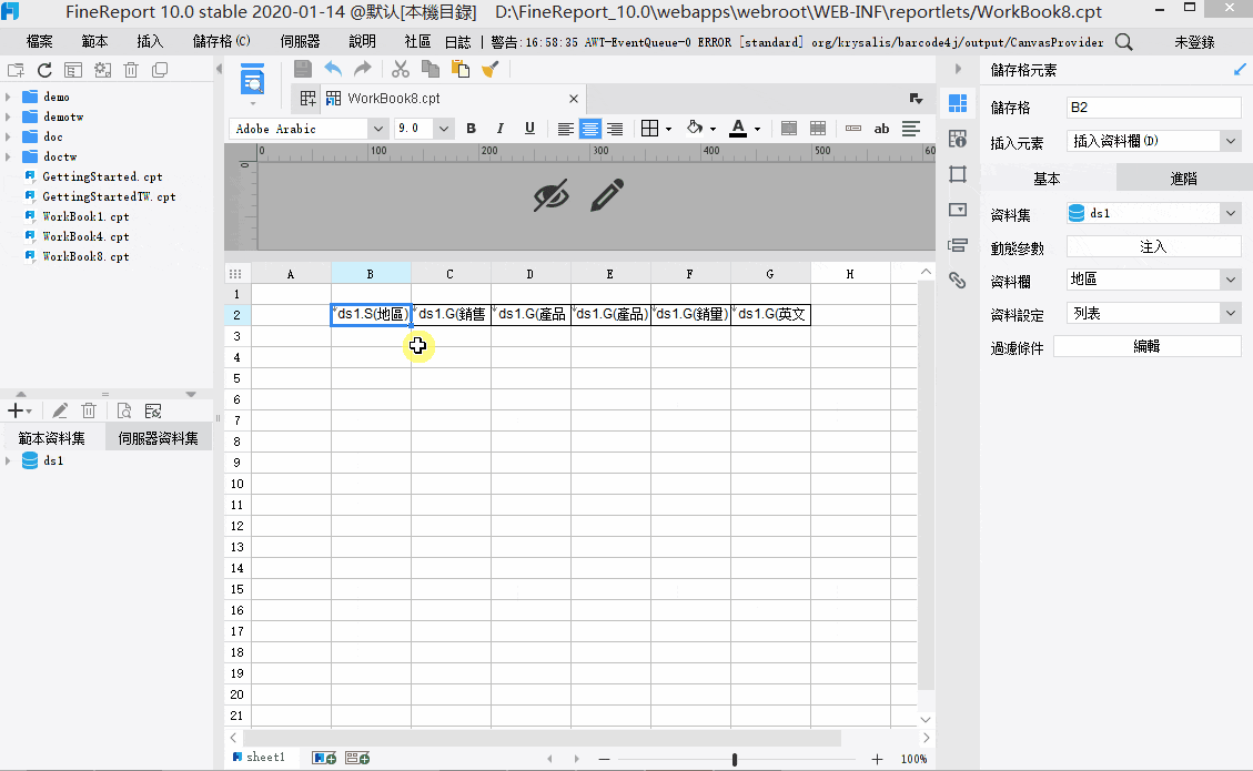 將ds1中的欄位拖入【B2:G2】儲存格。