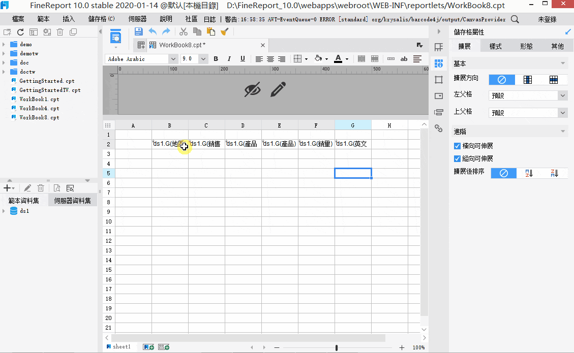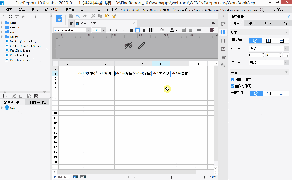 在儲存格中插入資料欄、設定擴展方向後,可以通過調整資料設定,讓擴展後的資料以分組、列表、匯總的方式展現。