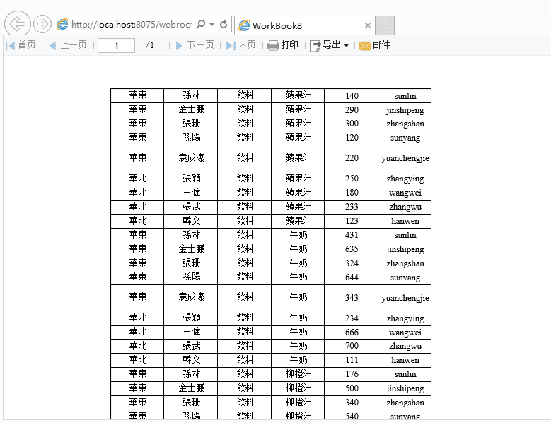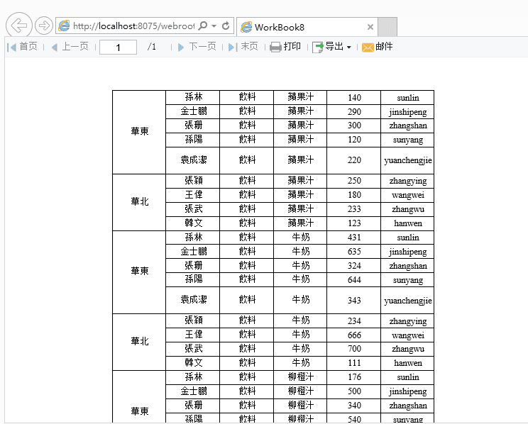 地區為分組展示,右側銷售員的資料因為設定為列表,則會一列一列的展示出來。
