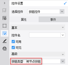 给添加了数据列的三个单元格(上图A1,A2,A3)设置按钮控件,右击这三个单元格,右侧弹出控件设置面板,按钮类型选择树节点按钮,如下图所示: