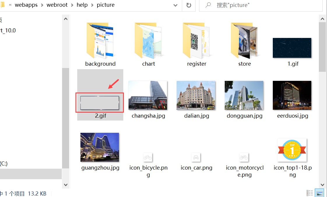 准备 一张 gif 动图 2.gif,放置在报表工程%FR_HOME%\webapps\webroot\help\picture下。如下图所示: