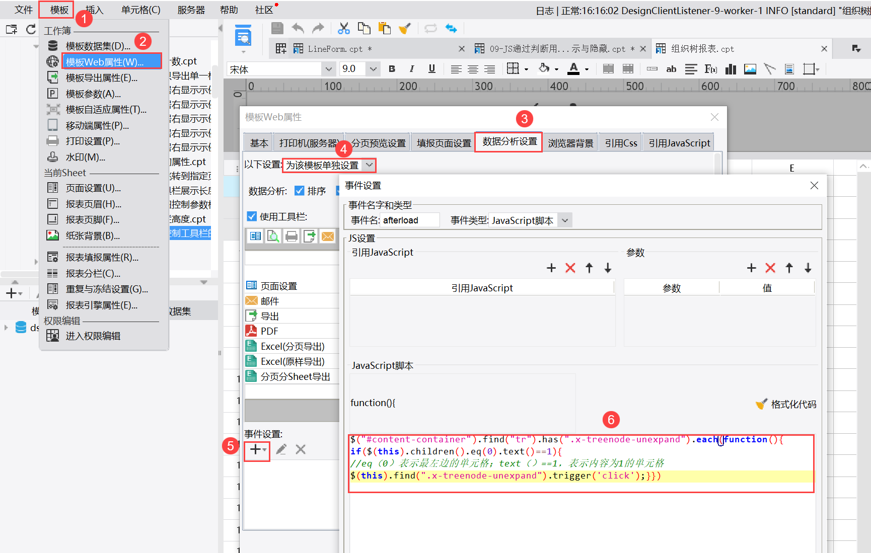保存模板,点击「数据分析」,只展开第一层树节点,效果如下图所示: