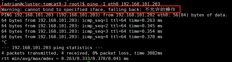 节点间使用命令:ping -I eth0 ip