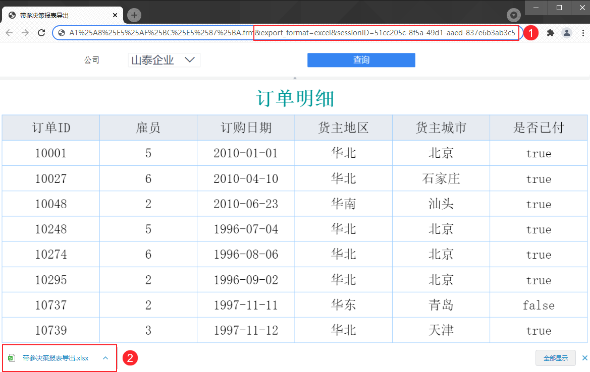 带参决策报表需在导出后缀中加上 sessionID,即 &export_format=xxx&sessionID=***