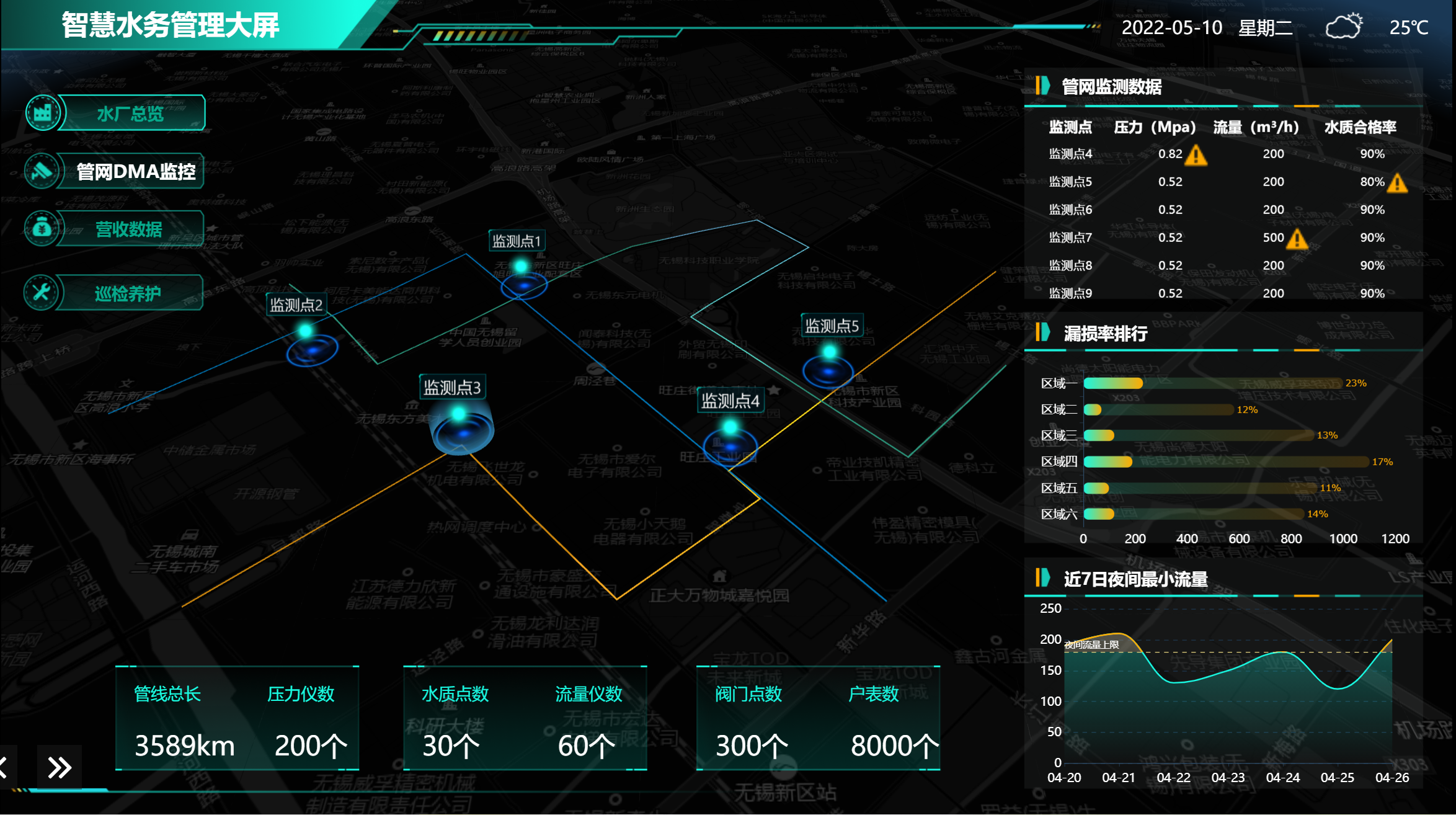 模板资源下载地址:智慧水务管理大屏,模板效果如下图所示: