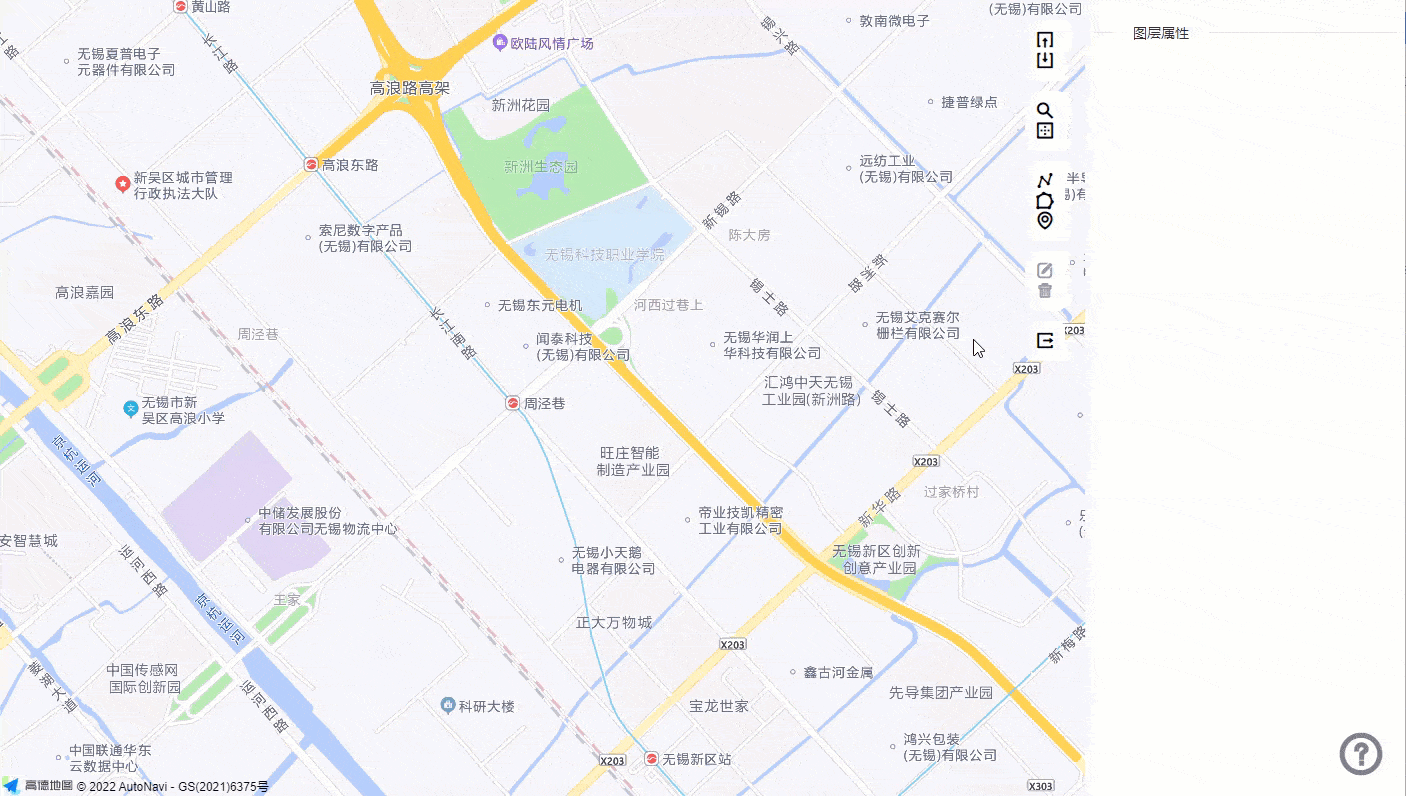 点击「添加标记点」按钮,选中标记点可以随意移动位置,在右侧图层属性会出现该点的经纬度。如下图所示: