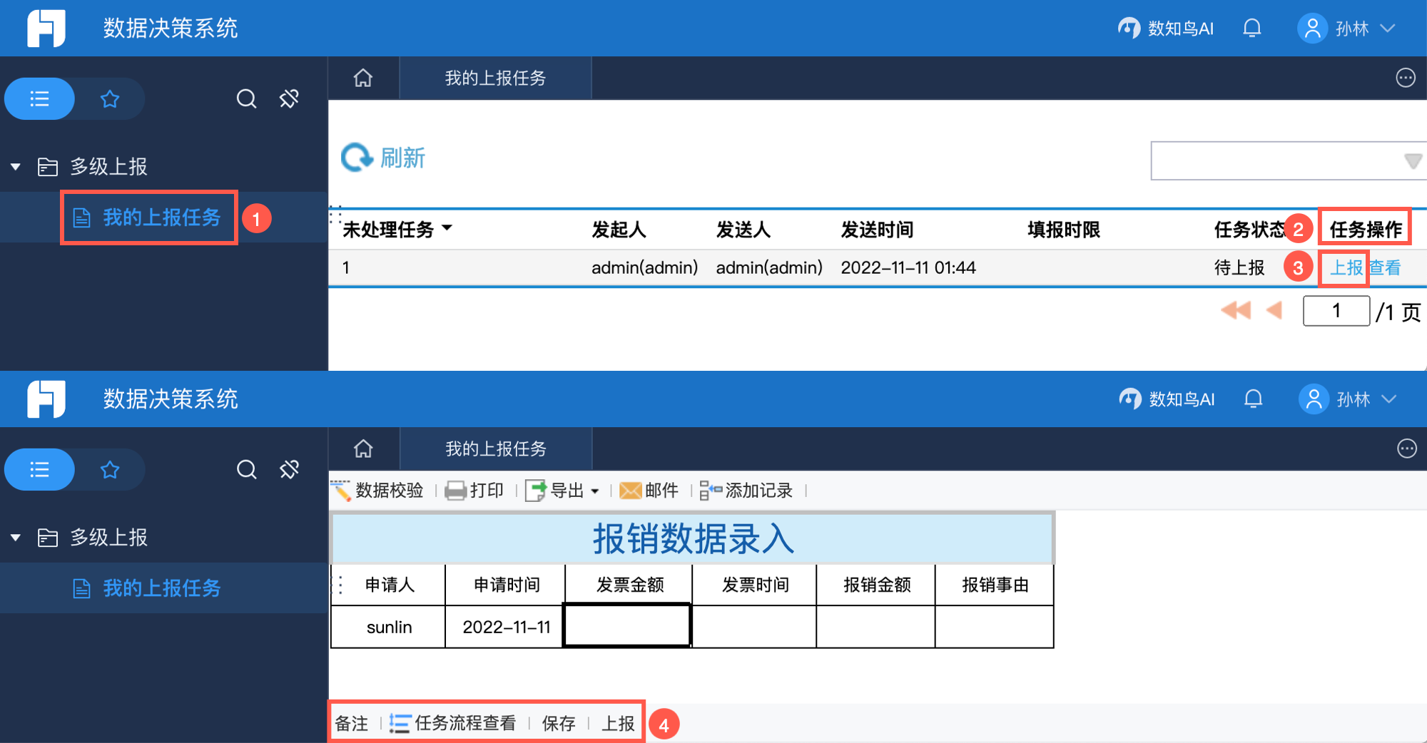FineReport 提供多级上报功能。
