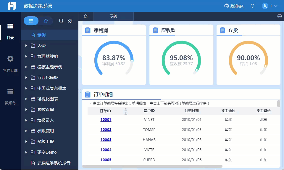 2)若开启了报表块工具栏,支持横向纵向滚动、翻页 支持悬浮查看数据点提示、图例交互、图表切换(按钮、轮播) 3)根据模板编辑状态中的参数默认值进行筛选 若模板中存在同名参数,参数生效顺序为:参数面板控件>模板参数>全局参数>body 控件>数据集参数 |
