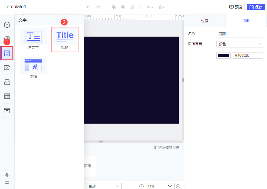 1)点击「文字>标题」,添加一个标题,如下图所示: