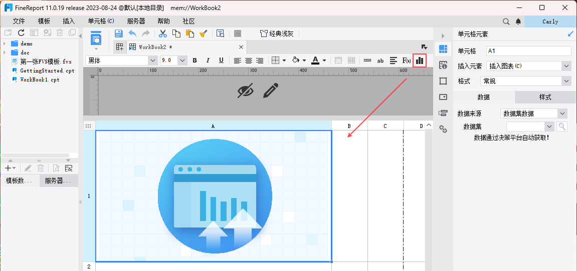 1)新建报表,将部门结构图拖拽到报表设计主体中