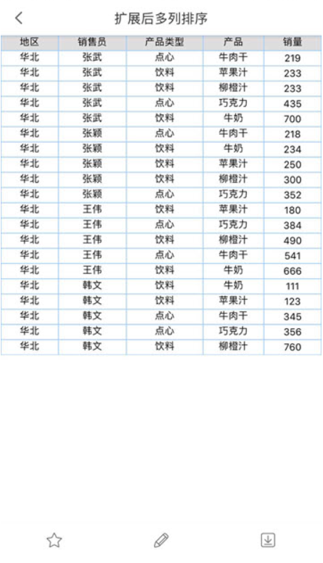 例如:扩展后结果先按照「销售员」排序,相同的销售员再按照「销量」排序,如下图所示: