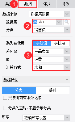 1)前两个图表绑定数据的方法是一致的,如下图所示: