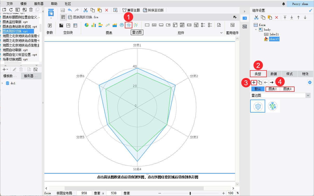 图表往往是按照从左往右或从右往左的顺序来切换。那么如何实现点击图表直接切换到其他不相邻的图表呢?效果如下图所示: