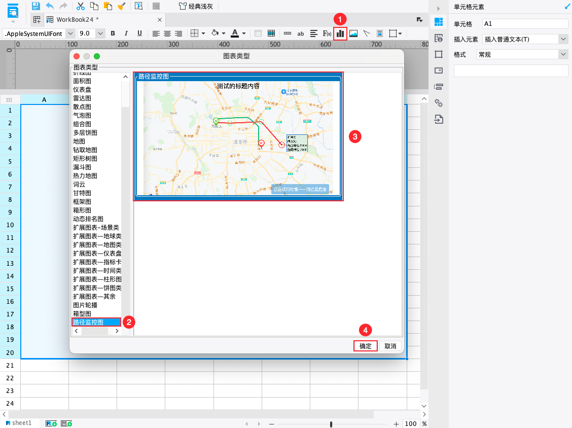 2)点击上方工具栏插入图表按钮,插入「路径监控图」