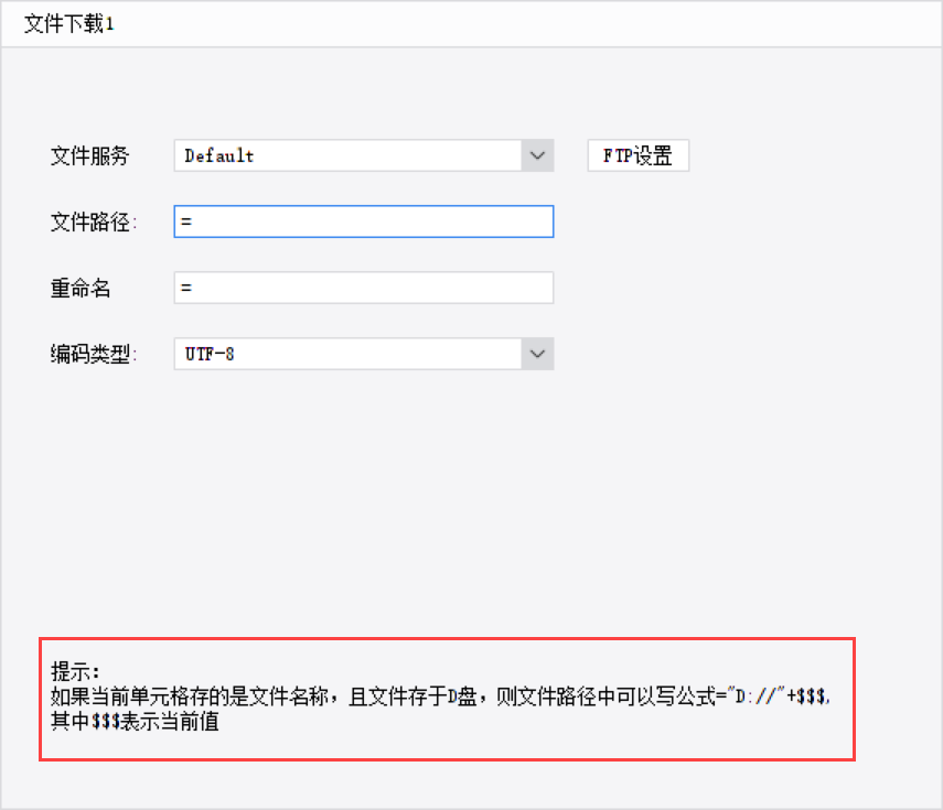 注2:下载重命名功能不支持读取扩展单元格值。文件下载路径不支持动态计算公式。