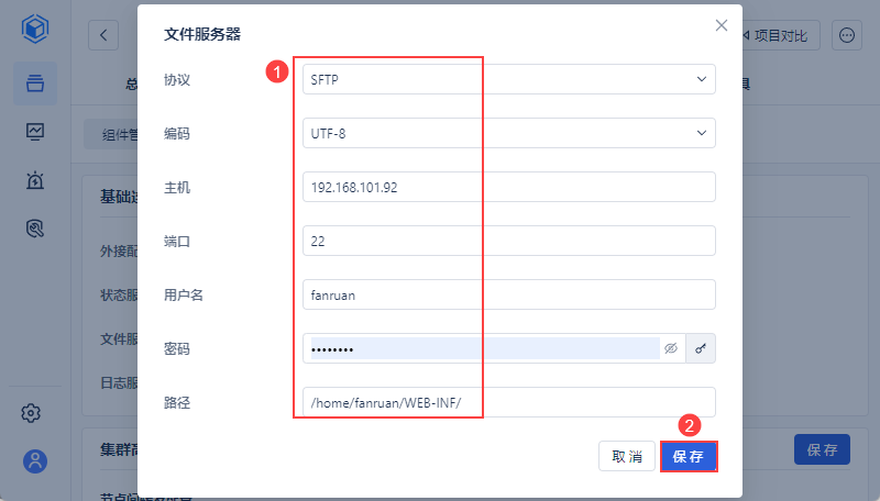 项目部署成功后,在运维平台的「集群管理」中,可为项目接入自备的SFTP作为文件服务。