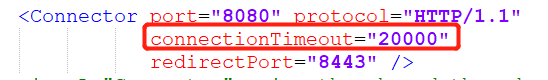 例如 Tomcat 容器可以修改%Tomcat_HOME%\conf 目录下的 server.xml 文件,适当调整 connectionTimeout 参数值,如下图所示:
