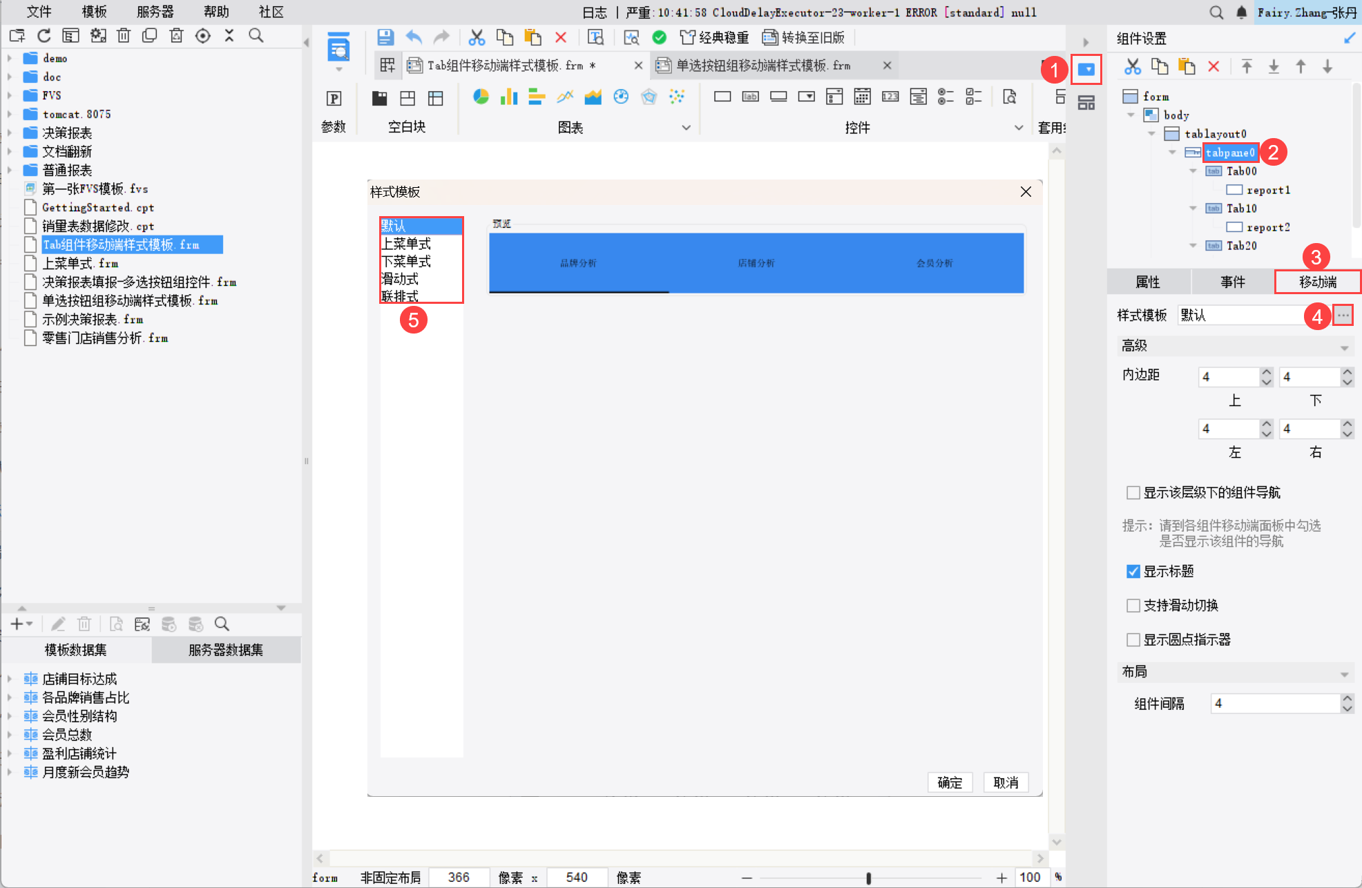 1)点击下载模板:Tab组件移动端样式模板.frm ,在 FineReport 设计器中打开该模板。