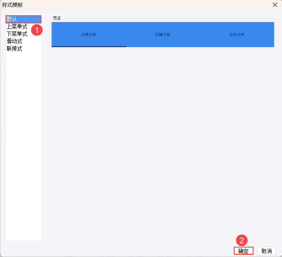 1)样式模板 选择「默认」,点击「确定」,如下图所示: