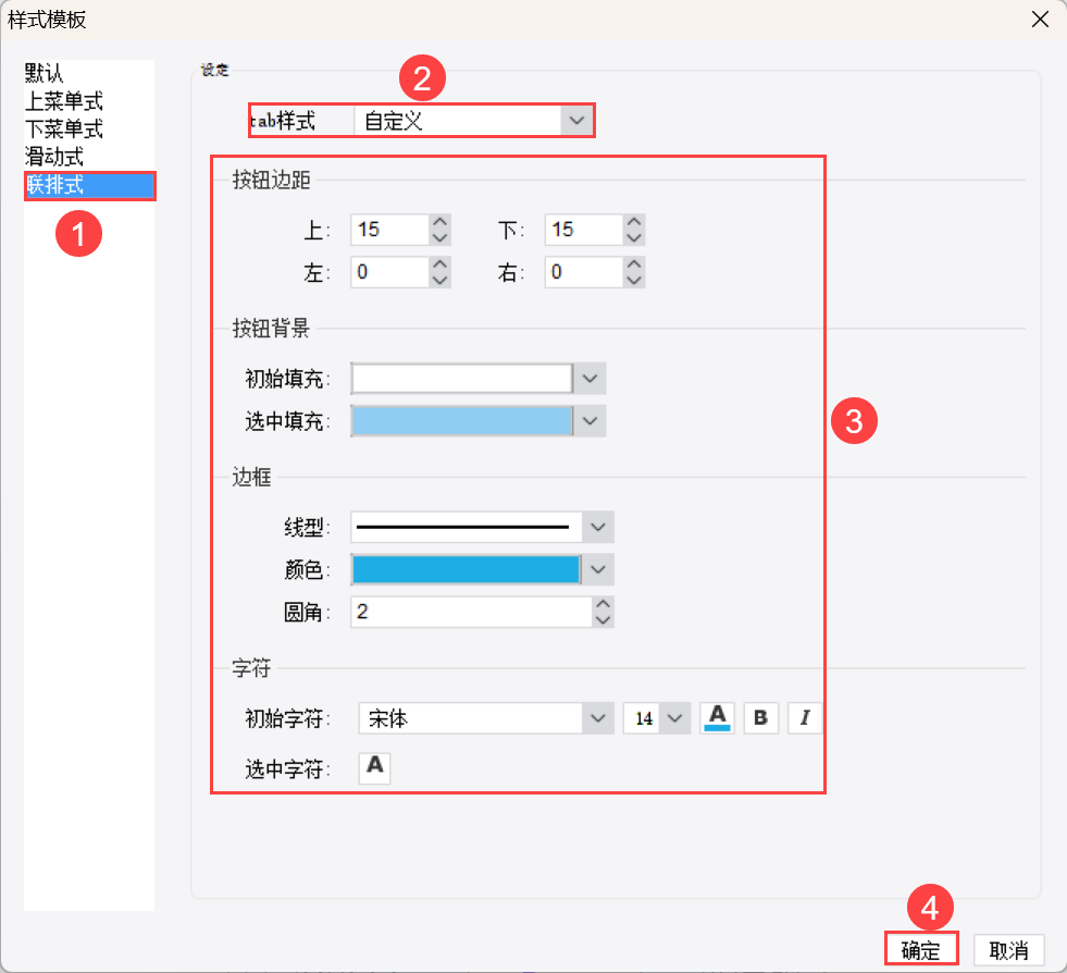 2)Tab 样式 为「自定义」时,可自定义设置 Tab 样式 。