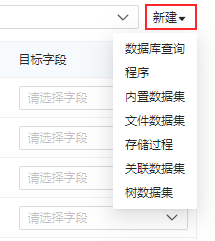 数据集新建完成后,目标数据集将自动选中新建数据集并完成字段匹配,设计器左侧数据集配置区域同步自动新增该数据集 | |