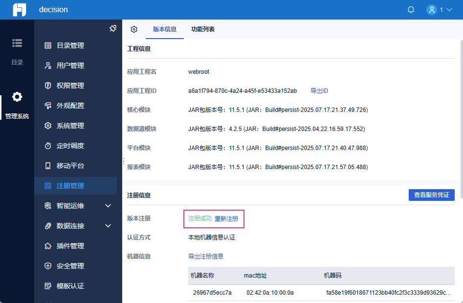 在「本地机器信息认证」注册的基础上,支持导出已拼接好机器码和 MAC 地址的集群 rif 文件,进行注册